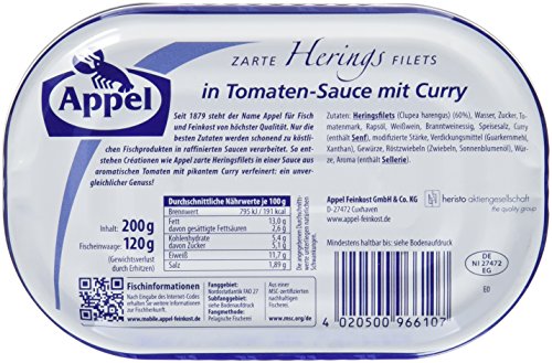 Appel Heringsfilet, zarte Fisch-Filets Tomate & Curry, MSC zertifiziert, 10er Pack (10 x 200 g Dose)