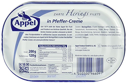 Appel Heringsfilets, zarte Fisch-Filets in Pfeffer-Creme, MSC zertifiziert, 10er Pack (10 x 200 g)