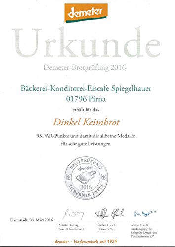 Bio Dinkelkeimbrot in Demeterqualität – aus echtem Urdinkel! Sie sind auf der Suche nach einem leckeren Brot, das zudem eiweiß-, basen- und ballaststoffreich ist? Dann können wir Ihnen unser geschmackvolles Bio Demeter Dinkelbrot ans Herz legen. Die Produkteigenschaften im Detail ohne Weizen, Hefe, Malz und Sauerteig reich an Eiweiß und Ballaststoffen geeignet im Rahmen einer basischen Ernährung zertifizierte Bio und Demeter Qualität regional Hergestellt und immer frisch Zutaten: gekeimter Dinkel, Granderwasser, Meersalz