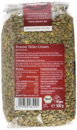Davert Braune Teller-Linsen, 4er Pack (4 x 500 g) – Bio
