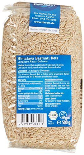 Davert Himalaya Basmati Reis braun, 4er Pack (4 x 500 g) – Bio