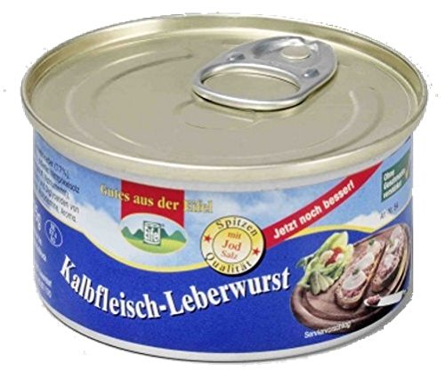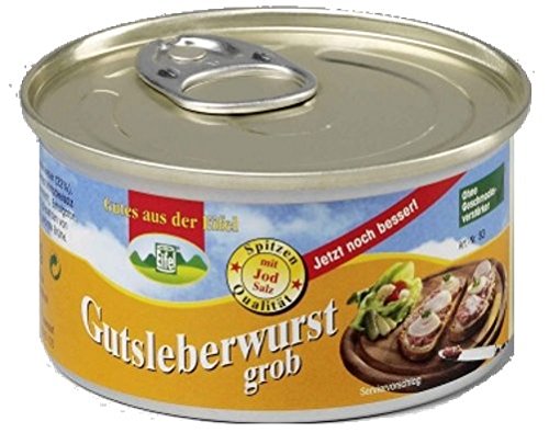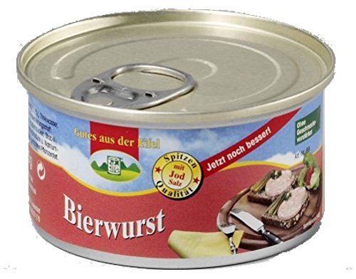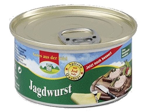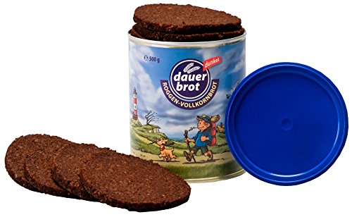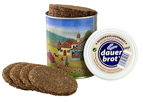 1-Person-Reserve Brot + Wurst, 1 x 500g Roggenvollkornbrot Dosenbrot, Marke „dauerland“, 1 x 500g dauerbrot „dunkel“, 6 verschiedene Dosen a 125g Eifeler Dosenwurst ( je 1 x Gutsleberwurst, Feine Leberwurst mit Kalbfleisch, gekochte Mettwurst, Schinkenwurst, Jagdwurst, Bierwurst). Zutaten: 1 ) Roggenvollkornbrot, Marke „dauerland“: Zutaten: ROGGENVOLLKORNSCHROT, Wasser, Salz, Hefe 2 ) Roggenvollkonrbrot, Marke dauerbrot „dunkel“: Zutaten: ROGGENVOLLKORNSCHROT, Wasser, ROGGENVOLLKORNMEHL, Rübensirup, Salz, Malzextrakt (GERSTE), Hefe 3 ) Gutsleberwurst: Zutaten: Schweinefleisch (55%), Schweineleber (22%), Schweinespeck, frische Zwiebeln, jodiertes Speisesalz, Emulgator: E 472c, Gewürze, Kräuter, Konservierungsstoff: Natriumnitrit. 4 ) Kalbfleischleberwurst, Zutaten: Schweinefleisch (50%), Schweineleber (21%), Jungrindfleisch (16%), Speck, SAHNE, jodiertes Speisesalz, Emulgator: E 472c, Gewürze, Saccharose, Konservierungsstoff: Natriumnitrit. 5 ) gekochte Mettwurst, Zutaten: Schweinefleisch (92%), jodiertes Speisesalz, Emulgator: E 472c, Gewürze, Röstzwiebeln, Dextrose, Gewürzextrakte, Konservierungsstoff: Natriumnitrit. 6 ) Schinkenwurst, Zutaten: Schweinefleisch (62%), Rindfleisch (11%), Trinkwasser, jodiertes Speisesalz, Gewürze, Dextrose, Gewürzextrakte, Stabilisator: Diphosphat, Würze, Antioxidationsmittel: Ascorbinsäure, Konservierungsstoff: Natriumnitrit. 7 ) Jagdwurst, Zutaten: Schweinefleisch (71%), Rindfleisch (11%), Trinkwasser, jodiertes Speisesalz, Gewürze (mit Senf), Stabilisator: Diphosphat, Gewürzextrakte, Dextrose, Saccharose, Säuerungsmittel: Citronensäure, Antioxidationsmittel: Ascorbinsäure, Würze, Rum, Konservierungsstoff: Natriumnitrit. 8 ) Bierwurst, Zutaten: Schweinefleisch (71%), Rindfleisch (11%), Trinkwasser, jodiertes Speisesalz, SENFKÖRNER, Gewürze, Stabilisator: Diphosphat, Antioxidationsmittel: Ascorbinsäure, Dextrose, Gewürzextrakte, Würze, Konservierungsstoff: Natriumnitrit.
