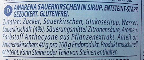 Amarena cherries A fruit, a tradition, an icon. Amarena Fabbri is the Italian specialty that has made the company famous throughout the world. Unique and inimitable, it is the result of carefully selecting the best fruit, seeded and candied in syrup according to a process handed down generation to generation since the creation of the recipe by the company?s founder. The essence of quality and sweetness, it has inspired a great many products, such as syrups and sweet sauces. Origin : Emilia Romagna Ingredients : Syrup of sugar, wild cherries, glucose syrup, wild cherries juice, citric acid. Net weight : 1,25 kg