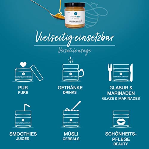Frombee Lederbaumhonig aus Tasmanien (Leatherwoodhonig) – 100 % natürliches und reines Naturprodukt – fruchtig und intensiv im Geschmack (1 x 500 g im Glas)