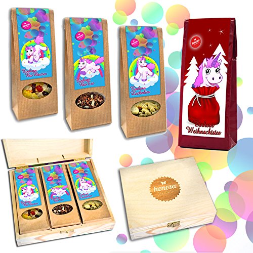 Einhorn Tee – Magischer Zaubertrank !! Ein Muss für alle Einhorn-Fans !!! Zum Aufwärmen in der kalten Jahreszeit gibt es fruchtig süßen Tee vom Einhorn. Lasst Euch von uns verzaubern!! Fruchtig süßer Früchtetee mit Erdbeere und Vanille. Inhalt: 50g Weitere 8 Sorten erhältlich.