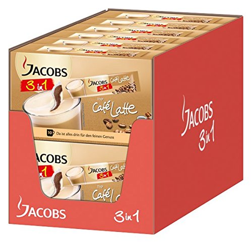 Jacobs 3 für 1 Cafe Latte, 10 praktische Becher-Portionen ,Löslicher Kaffee mit Kaffeeweißer und Zucker, 12er Pack (12 x 125 g)