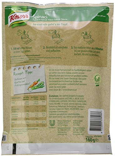 Knorr Spaghetteria Spinaci Fertiggericht Pasta (in Spinat-Käse-Sahne-Sauce) 10 x 160 g