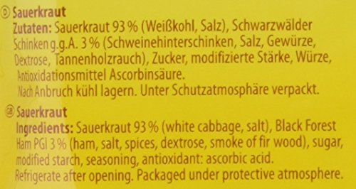 Kühne Sauerkraut Schwarzwälder Schinken im Beutel, Fix und Fertig mit feinen Schinkenwürfeln, 400 g