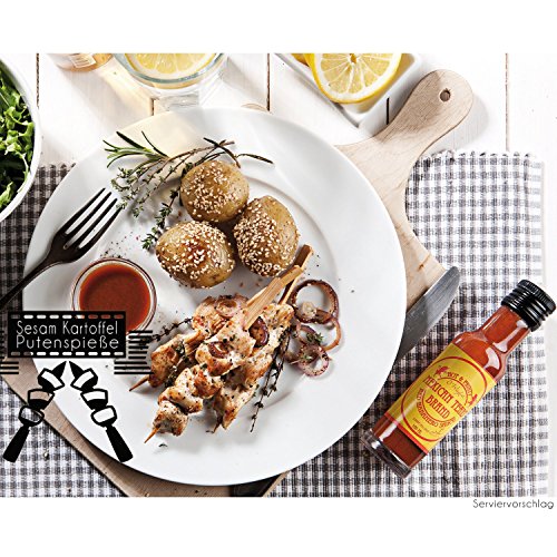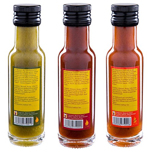 Natürliche, bordeauxrote, Chili Sauce mit Bouquet vom Mesquitenholz. Angenehme Schärfe, die in der Regel nach 3-5 Minuten nachlässt. Hinzu kommt ein harmonisch kraftvolles Zusammenspiel der verarbeiteten Rohstoffe ohne essighaltigen Geschmack. Das rustikale Bouquet der Mexican Tears – Red Pepper Sauce unterlegt mit geräucherten Jalapeños. Im Eingang hell, angenehme schärfe belohnt durch die rubinroten Chipotles. Am Gaumen dann unglaublich: dezente Süße, angenehme Schärfe, die sich wie ein Samttuch niederlässt. Belebender reifer Abgang, sehr eindrucksvoll! Scheinbar ewig. Und dies mit einer gekonnten Massivität. Eine Jahrhundertsauce. Natürliche, grüne Chili-Sauce. Angenehme Schärfe, die in der Regel nach 3-5 Minuten nachlässt. Hinzu kommt ein harmonisch kraftvolles Zusammenspiel der verarbeiteten Rohstoffe ohne essighaltigen Geschmack. Klares Bouquet nach grünen Jalapeños, leicht blumig. Im Eingang fruchtig, sehr frisch behauptet durch eine feine süße. Mitte dezente Schärfe, natürlich, sehr offen. Kurzer Abgang. Angenehm scharfe Sauce, auf Grund ihrer besonderen Herstellung eindrucksvoll, muss jetzt nochmal probiert werden. Die Nachbrennzeit beträgt 3-5 Minuten.