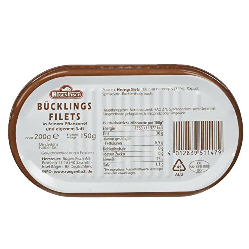 Rügen Fisch Bücklingsfilets in Pflanzenöl und eigenem Saft, 200g