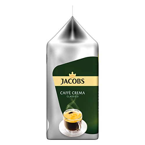 Tassimo Jacobs Caffè Crema Classico, Kaffee mit feiner Crema, 16 T-Discs:Ein Kaffee mit einem vollmundigen Geschmack und einer besonders feinen Crema. Rainforest Alliance zertifiziert. Rainforest Alliance steht für nachhaltige Landwirtschaft, die die Lebensbedingungen in den Anbauländern verbessert und das Ökosystem Regenwald schützt. Portionen pro Packung: 16 Tassengröße: 150 ml Intensität: 4 von 7 , Zutaten:TA0481: Gemahlener Röstkaffee , Lieferumfang:5 x 1 Packung Tassimo Jacobs Caffè Crema Classico, Kaffee mit feiner Crema mit 16 T-Discs für 16 Portionen Nettogewicht: 112g / Packung, 7g / T-Disc
