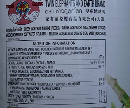 Die Jackfrucht hat viele Namen, je nach Region nennt man sie auch Jackbaumfrucht, Jakobsfrucht, Jaca oder Nangka. Unter Veganern und Vegetariern ist die Jackfrucht längst kein Geheimtipp mehr. Gerne wird die Frucht wegen Ihrer geflügelfleisch-ähnlichen Konsistenz als Fleischersatz genutzt (deswegen auch Gemüsefleisch genannt). Selbst unter Fleischessern ist ein gewürztes Jackfruchtgyros, Gulasch, gebratene, gebacken oder frittierte Medaillons (gern auch paniert) nicht wirklich von „echtem“ (Hähnchen) Fleisch zu unterscheiden. Wir bieten hier die Frucht extra in Stücken an. So lässt sich das Gemüse besser zubereiten. Als Gemüse in Currys ist die große Frucht auch sehr beliebt. Lieferumfang: 4 Dosen a 540g Inhalt Dose: 540g / Abtropfgewicht:324g gesamt: 2,16kg / Abtropfgewicht: 1,296kg