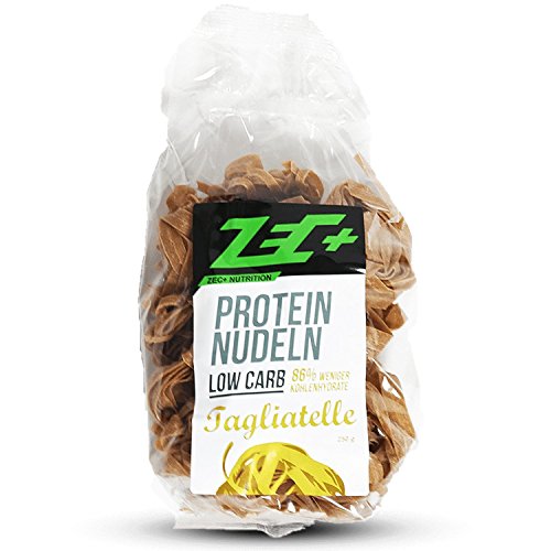 ZEC+ NUTRITION® 3er Pack Protein Nudeln LOW CARB die kohlenhydratarmen Eiweißnundeln 750g Low Carb Nudeln – die kohlenhydratarmen EiweißnudelnLeckere Low Carb Nudeln – endlich abends Pasta!Low Carb Nudeln – Wer sich kohlenhydratarm ernähren möchte, mehr Proteine zu sich nehmen will, oder eine Diät macht, der kann sich jetzt den Luxus von Nudeln selbst am Abend erlauben!Eiweißnudeln für die kohlenhydratarme und trotzdem sehr schmackhafte Zubereitung von gesunder Low Carb Pasta, eignen sich hervorragend für eine schnelle Mahlzeit – fertig in 6-7 Minuten! Low Carb Nudeln liegen nicht nur im Trend, sondern lassen sich mit den eigenen Lieblingssaucen perfekt zu einer gesunden proteinhaltigen Speise kombinieren.Low Carb Nudeln haben 86% weniger Kohlenhydrate als herkömmliche Nudeln! Protein-Nudeln TagliatelleWertvolle Weizen-, Soja- und Reis-Proteine sorgen bei unseren Low Carb Nudeln für eine bekömmliche Extra-Portion Proteine. Mit einem Anteil an gesättigten Fettsäuren von unter einem Prozent und einem Ballaststoff-Anteil von über 23 Prozent, sind die Eiweißnudeln auch generell im Rahmen der gesunden Ernährung zu empfehlen.Qualität MADE IN GERMANY – Nur Original von Zec+ Nutrition®